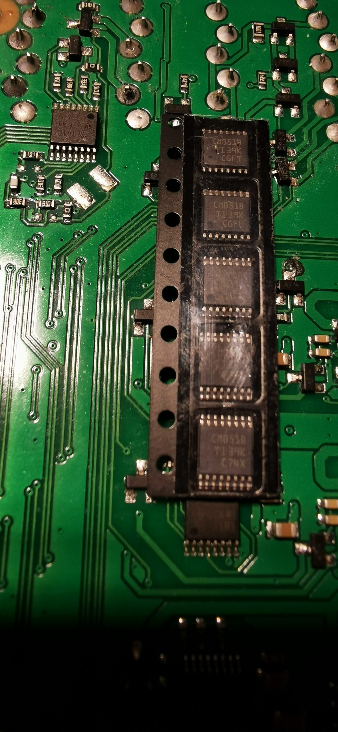 Dann messen in der Schaltung, auch oft Problem. Aber HALT dachte ich mir, das Gerät hat ja noch einen 2 Eingang, der noch ging, also muss ich nur den kanal finden auf der leiterplatte, und messen. Dann vergleichen mit den Messwerten auf den Defekten Kanal .